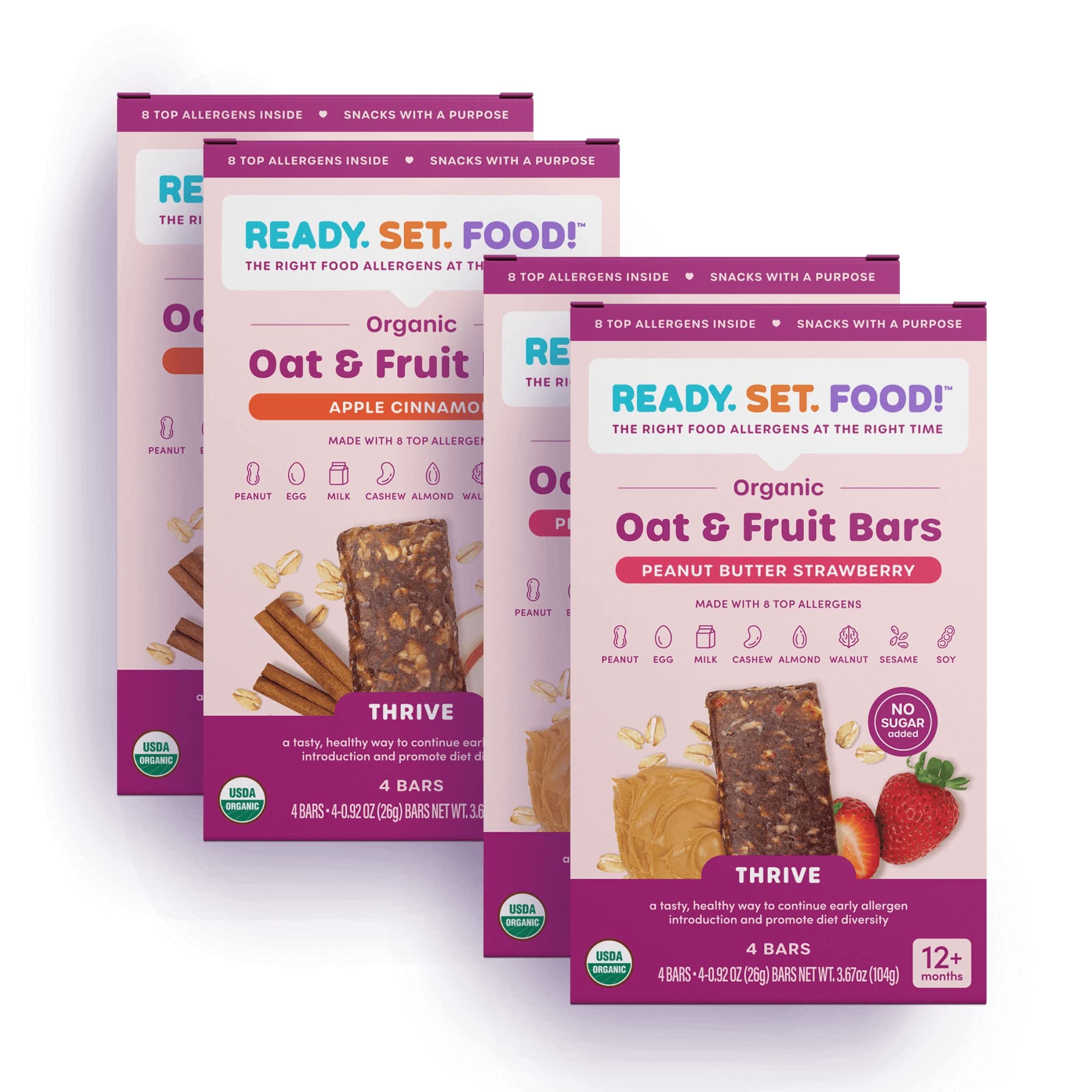Amazon Com Ready Set Food Barritas Organicas De Frutas De Avena Manzana Canela Y Mantequilla De Mani Fresa Variedad De 4 Unidades Snack Bar Organico Para Ninos Pequenos 8 Alergenos Principales