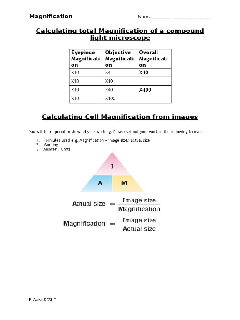 Calculating Magnification Worksheet Teacher Made Twinkl
